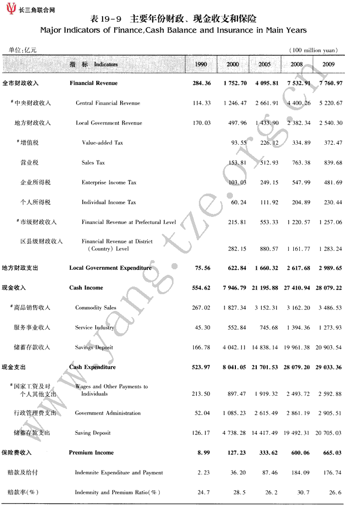 主要年份财政、现金收支和保险